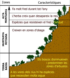 | Les plantes necessiten unes condicions especifiques per créixer segons l'espècie a la que pertanyen. Algunes requereixen molta aigua mentre que altres són molts resistents a la sequera. Unes resisteixen molt bé el fred i altres necessiten temperatures més càlides. És per això que la vegetació varia segons el relleu, el clima, el tipus de sòl i la influència del ésser humà. |