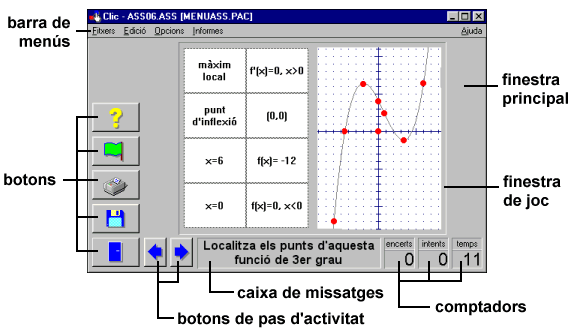 El Clic utilitza un format homogeni per a presentar les activitats, on es diferencien diverses zones: