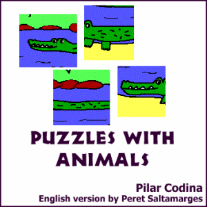 - Modifiqueu el gr�fic per tal que el t�tol sigui PUZZLES WITH ANIMALS, i al subt�tol, afegiu sota el nom de l'autora la frase "English version by " i el vostre nom. M�s o menys hauria de quedar aix�: