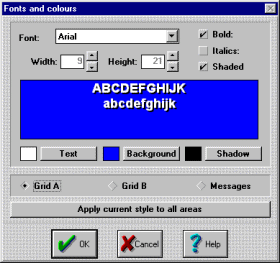 - Select the font by dropping the Font list. It is recommended to use the basic Windows fonts, especially if you are planning to install you activities on various computers. If you specify other fonts, the users of your activities will need to have these fonts installed as well. The basic Windows fonts are Arial, TimesNewRoman, CourierNew and System.