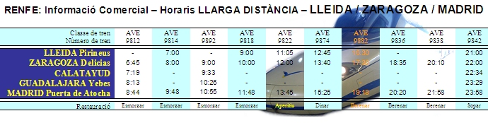 Observa amb atenció l'horari dels trens AVE de la línia entre LLeida i Madrid, després contesta les preguntes. Consulta la taula de dades tantes vegades com et calgui:
