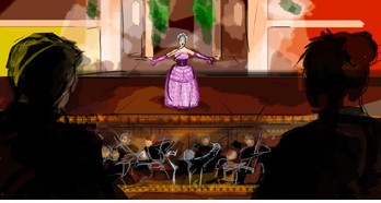 - L'actriu portava un vestit llarg i cantava molt bé.