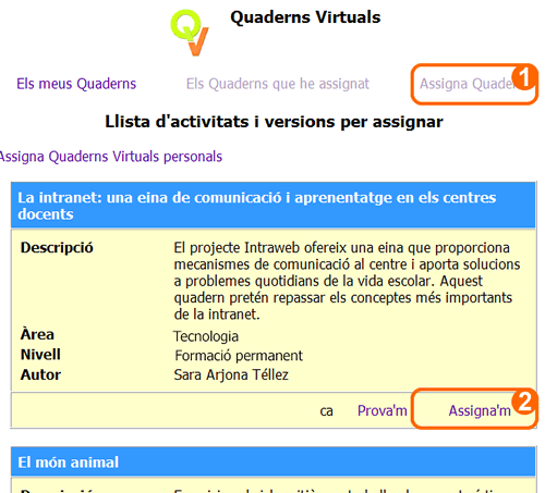 En aquesta pràctica, se us proposa crear assignacions de Quaderns Virtuals a la intranet de centre. |