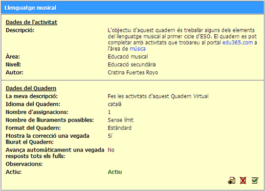 Per a cadascun dels Quaderns que han estat assignats, es pot veure