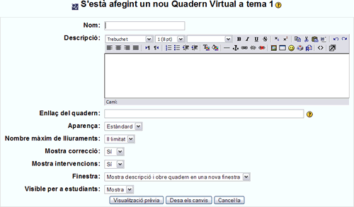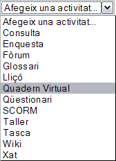 Llista per afegir una activitat de tipus Quadern Virtual |